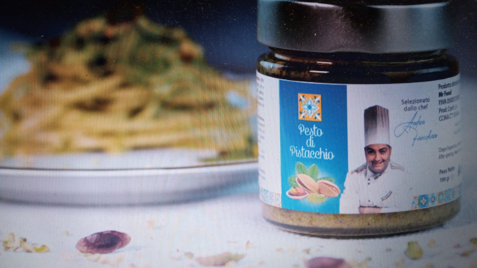 a personaPESTO DI PISTACCHIO SALATO IN VASETTO DA 190 GR.