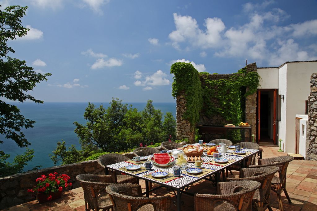 Villa panoramica in un'esclusiva tenuta di 3 ettari con scenografica vista sulla baia di Amalfi. La proprietà si estende dalla strada Amalfitana fino al mare. Viste da cartolina, spiaggia privata, la più grande piscina con acqua marina, senza cloro, 18 mx 7 m, RISCALDATA da Settembre a Giugno. Decorazioni interne in stile mediterraneo. Accesso privato al mare. Adatto ai bambini, privacy, ampi terreni. 6 camere da letto 7 bagni, parcheggio per 5 veicoli. Su richiesta cucina, per cena, pranzo e colazione. La proprietà è interamente esposta a sud, situata sul tratto costiero da Capo Dorso a Maiori, gurdando ad Amalfi, Ravello e Conca De Marini. Il sole sorge ad est su una vicina Torre Normanna del XII secolo, attraversa il Mediterraneo a sud e tramonta sulla baia di Amalfi a ovest, con il risultato di illuminare tutti i locali dall'alba al tramonto. Spiaggia piú vicina, la nostro presso la baia marina di proprietà. La spiaggia di sabbia più vicina è Cavallo Morto, a 500 m, con acqua taxi. Ristoranti più vicini a Maiori a 5 minuti in auto. Amalfi a 20 m in auto, Ravello a 25 minuti in auto, Praiano a 30 minuti in auto.